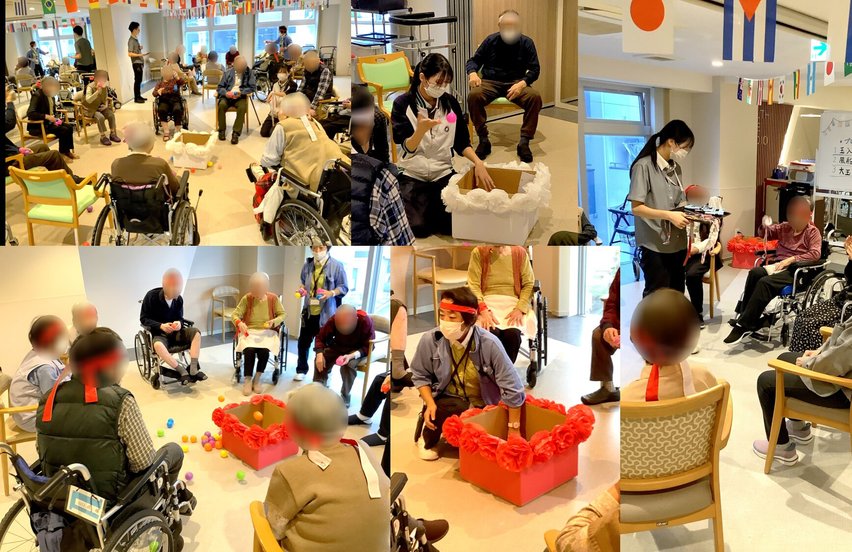 競技の合間には、応援席から「がんばれ!」の声が飛び交い、入居者様の笑顔があふれました。普段は静かな方も自然と声を出され、運動会ならではの活気を感じることができました。