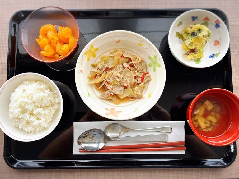 9月22日の昼食です。 ・ご飯 ・豚とキャベツの塩だれ炒め ・さつま芋サラダ ・フルーツ(みかん缶) ・すまし汁 豚とキャベツの塩だれ炒めは、塩だれの味と香りが豚肉とキャベツに絡み合って食欲をそそりま ...